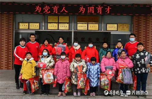 10日上午10点,齐鲁晚报·齐鲁壹点联合安利志愿者开展的冬日暖阳送温暖活动来到东港区三庄镇竖旗小学,给14名贫困儿童送去羽绒服、书包、保温杯以及疫情防护包等爱心物品。这是齐鲁晚报·齐鲁壹点日照融媒中心联合安利志愿者持续近十年来活动的延续,已经为数百名贫困儿童送去温暖。