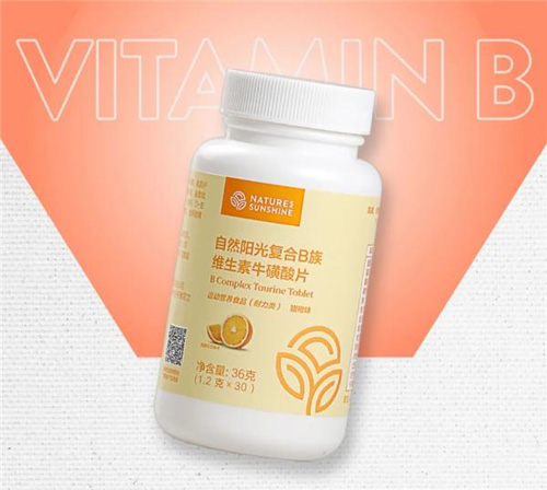 以最新产品复合B族维生素牛磺酸片为例,为解决一种营养品不能补充多种营养的痛点,自然阳光在这个产品里添加了维生素B1、维生素B2、维生素B3、维生素B5、维生素B6、维生素B7、维生素B9、维生素B12、牛磺酸等多种营养成分,以一补多。并且采用ROCOAT包埋技术,易分割切线,0糖甜橙味,软硬适中,既可以直接吞食,也适宜咀嚼补充。