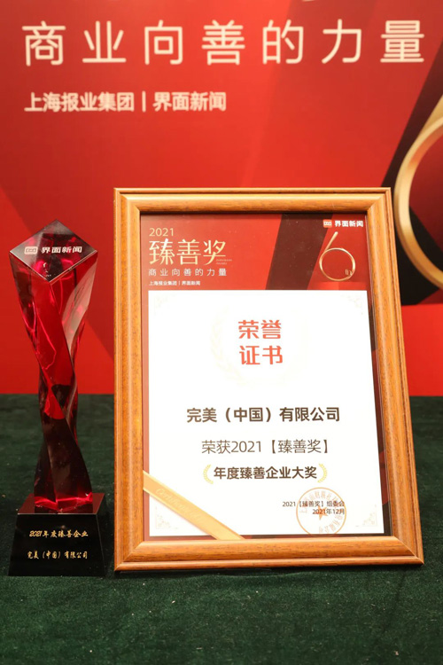 完美公司以卓越的CSR及慈善实践精神荣获2021【臻善奖】年度臻善企业大奖;