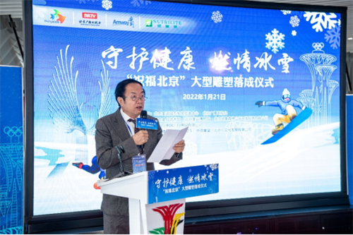 1月21日,北京广播电视台、北京奥运城市发展促进中心、安利公司,携手著名艺术家袁熙坤,在北京奥林匹克塔揭幕落成“守护健康燃情冰雪-祝福北京”主题雕塑。