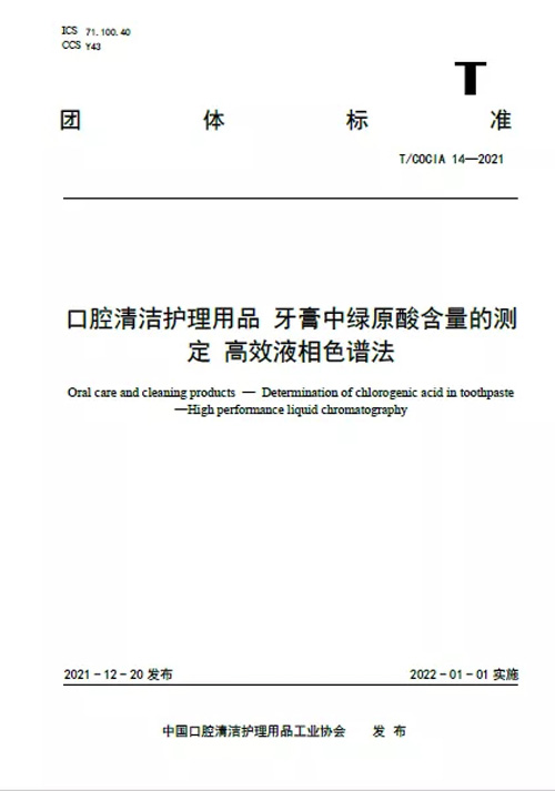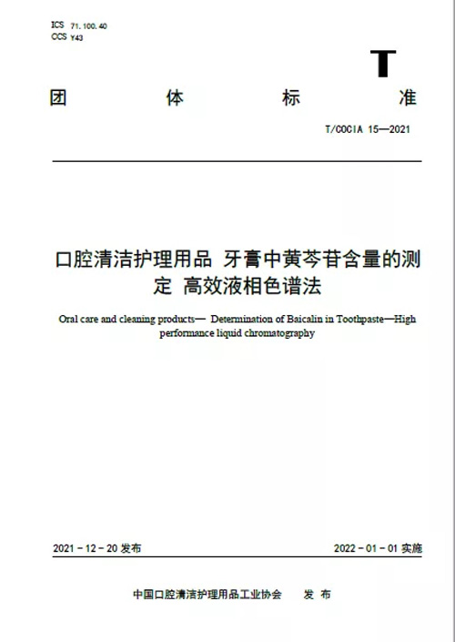 近日,由无限极牵头制定、中国口腔清洁护理用品工业协会审批通过的两项团体标准《口腔清洁护理用品 牙膏中黄芩苷含量的测定 高效液相色谱法》 《口腔清洁护理用品 牙膏中绿原酸含量的测定 高效液相色谱法》正式实施。