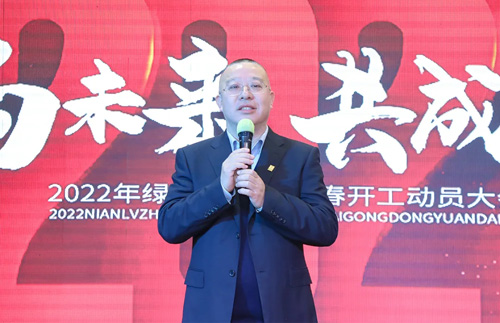 新春开工动员大会上,绿之韵集团董事、总裁劳嘉发表新春致辞。她首先代表集团公司向现场的所有家人们送上新春的祝福。2022年的春节,意义非凡。北京冬奥会开幕,我们感受到了中国的民族自信和文化自信,希望每个员工也要树立强烈的自信意识,真正做到文化自信、产品自信、服务自信、价值观自信和品牌自信,为“中国梦、绿之韵梦”凝聚奋斗的力量。从中国女足的胜利,我们可以深切感受到铿锵玫瑰的众志成城、拼搏不息的精神,永不言弃、不畏强手的奋斗精神和团结协作、顽强不屈的团队品格,希望每个员工也要继承和发扬这种精神,争当伟大事业的建设者、文明风尚的倡导者、敢于追梦的奋斗者。今天是开工的第一天,2022年的号角已经吹响,有的伙伴已经奔向了市场一线,她代表集团公司董事会号召所有的绿之韵人,共同为了年度业绩目标开足马力,全力以赴,一起奔向更加辉煌的2022!