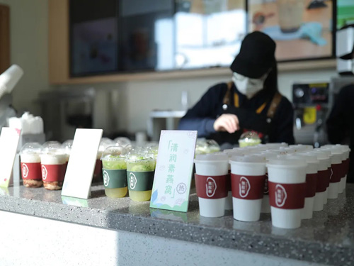 别出心裁模仿中药百子柜设计的装饰,配上大奶茶造型特别抢眼。