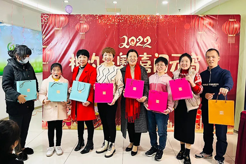 王彦君总经理为吃到“财神送宝”好彩头的新时代人送上元宵节大礼。幸运者穿上财神服,戴上财神帽,拿着金元宝,通过撒糖的方式给全场新时代人带去好运。