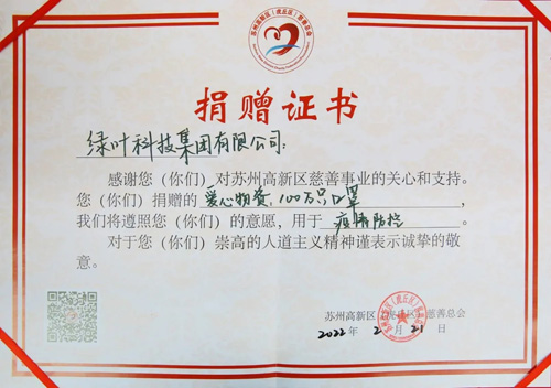 绿叶捐赠100万只口罩助力苏州疫情防控