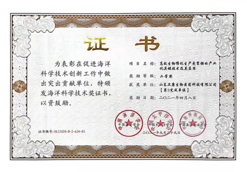 卫康生物集团申报的《高效生物催化生产壳寡糖的产业化关键技术及应用》荣获国家海洋科学技术奖。
