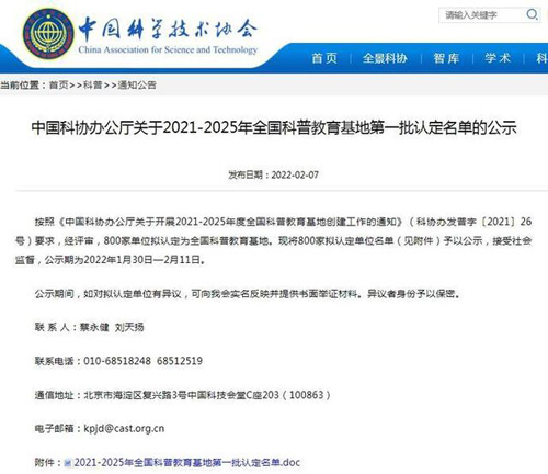 近日,中国科学技术协会发文认定,2021-2025年第一批全国科普教育基地,全市共2个入选,安利(中国)植物研发中心榜上有名。这是我区继中国科学技术协会和科技部重新命名“全国科普教育基地”之后,再次获得的科普领域“国字号”殊荣。