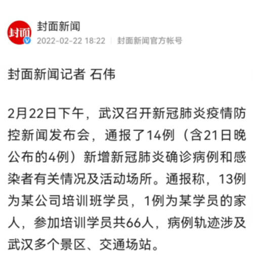 近日,被武汉疫情刷屏了,新冠病毒再次侵袭武汉,一场培训或成疫情“放大器”,关联企业冲上热搜,全国多地疫情与此相关。