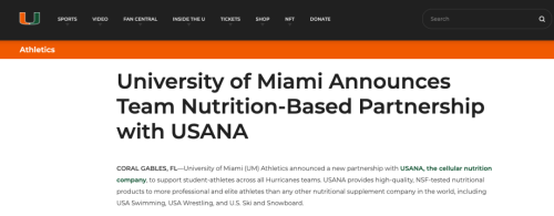 葆婴USANA首席传播和营销官丹·马库加(Dan Macuga)表示:“在过去的20多年里,我们一直与奥运会及专业水平的运动员合作,为他们提供高质量的营养补充剂和维生素。随着最近大学赞助机制发生了变化,我们认识到有机会与像迈阿密大学这样的学生运动员和运动项目合作。尤其是他们的表现一直让人赞叹,并且这些运动员们知道如何走出自己运动生涯的下一步。我们很高兴能够为他们提供营养支持。”