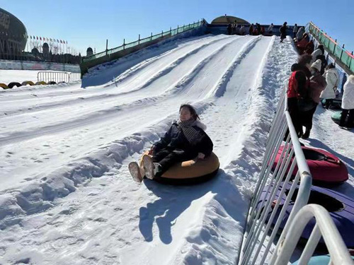 冰雪乐园内,一派热闹景象,来自市区的50余组家庭人员在宽阔的雪道上肆意驰骋,感受速度与激情。极速雪圈、冰上自行车、助推小企鹅车等项目备受青睐。丰富的冰雪项目让参与者与冰雪有了更紧密的接触,更细致地感受到了冰雪之乐。“我看了冬奥会,特别喜欢谷爱凌姐姐,我也要好好学习,希望以后可以像她那样参加冬奥会,为国增光。”正在玩雪的欢欢高兴地说。