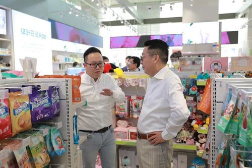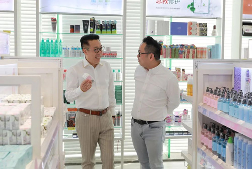 一楼绿叶超市全国000001号店内,徐建成董事长向徐晓平董事长介绍了绿叶、Greenleaf、希诺丝、爱生活、净呼吸、月中桂等绿叶旗下各大品牌的店内产品,双方就民族日化品牌深化核心优势、融合线上线下业务、聚焦私域流量等内容作了深入交流。