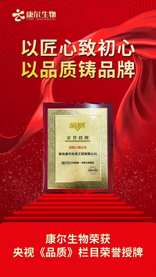 品牌无形,品质有心。优质的品牌,源于过硬的品质。继霸屏央视之后,康尔生物再获国家级电视台的肯定,荣获央视《品质》栏目“选题入围企业”殊荣。