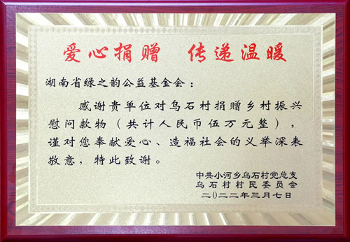 - 绿之韵捐赠20万助力安化县平口镇乡村振兴