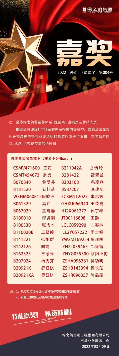 嘉奖令丨2022年度绿之韵营销精英旅游嘉奖Ⅳ