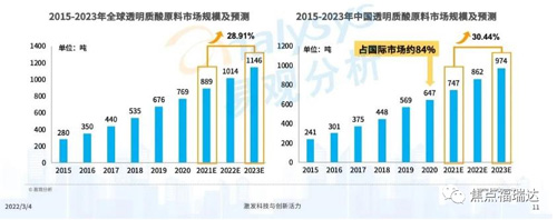 白皮书认为,中国是透明质酸原料的主要生产国,国内市场需求近年也呈快速增长趋势。