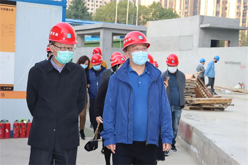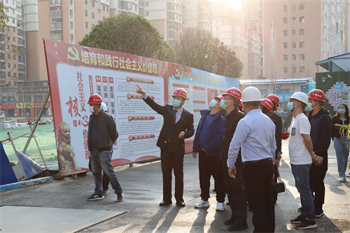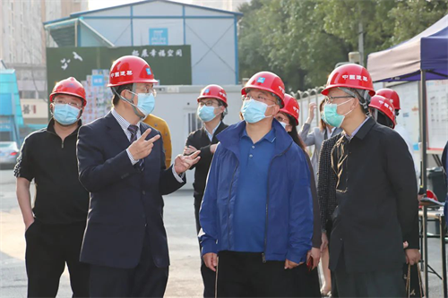 调研组一行在项目工作人员的引导下,前往工地现场查看了整个项目的施工进度及作业环境,了解绿之韵中心项目建设安全生产、绿色施工情况,并前往项目工地食堂了解卫生防疫、食品安全等情况。