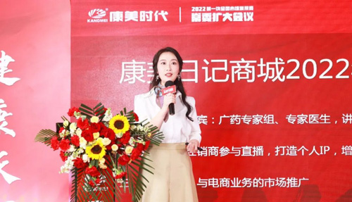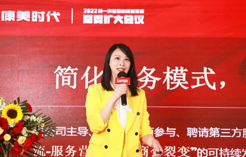 康美时代(广东)发展有限公司营销副总叶兆红,围绕模式、品牌、服务、系统、产品、教育、公益等方面,带来六大年度经营策略,七大重要举措。她指出,2022年,公司将强化品牌优势,放大平台价值;优化商业模式,助力个人创业;简化业务模式,提升成交转化;固化线上模式,建立展业节奏;细化服务模式,客户驱动成长;深化数智功能,提高展业效率。