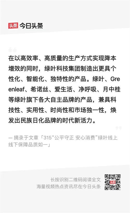 媒体报道:绿叶坚守产品品质 共促消费公平