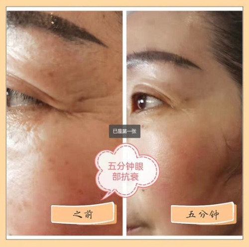 可以从对比图中看出,【梦于杺】与女神仪的双管齐下,才用了5分钟的时间就见效了,脸部皱纹淡化效果确实非常明显,皮肤也变得更有光泽。不夸张地说,真的有立竿见影的效果。