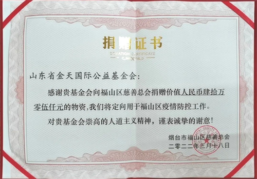 金天国际基金会捐赠40余万支持烟台抗疫