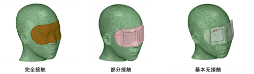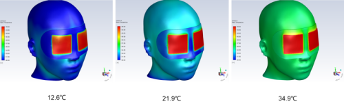 不同温度环境中,完全接触下人体头部表面达到最高温度时的温度分布情况