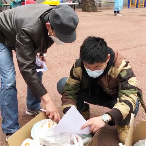 东直门街道党群服务中心党委张柏能副书记分发物资