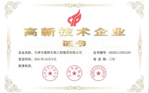 2021年10月,康婷获得高新技术企业证书。