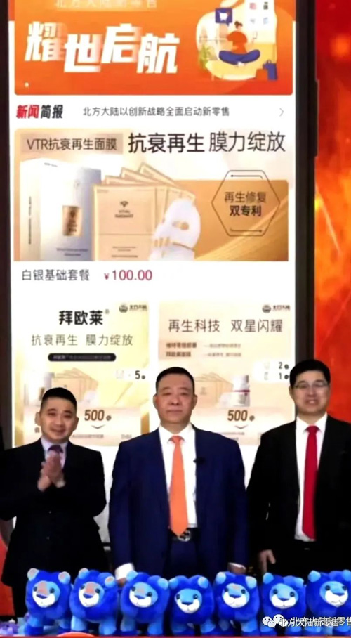 从左至右依次为:新零售事业部总裁罗来安、北方大陆集团总裁邹忠全、新零售执行总裁罗忠明