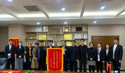 2022年4月12日,内蒙古宇航人公司总裁王尚义、副总裁陈杰等一行,将一面写有“优化营商环境纾企困,主动担当作为解民忧”的锦旗送到内蒙古自治区市场监督管理审评查验中心,感谢自治区市场监督管理审评查验中心对宇航人公司审评查验中给予的倾心服务和大力支持。