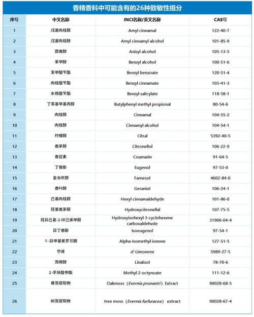 对于香精香料,儿童化妆品配方不建议使用成分复杂的可能含有26种致敏性组分。如果使用,应当进行充分安全评估,对致敏性组分含量在驻留类产品中大于等于0.001%,以及在淋洗类产品中大于等于0.01%时,应当在标签上标印以告知消费者。