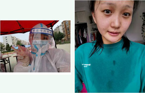 酷暑下,她穿着密不透风的防护服,成为社区家园的守护者“大白”,与医护人员一起奋斗在一线,先后参加了三次核酸检测志愿服务工作,耐心维护现场秩序,认真登记检测人员信息。汗水湿透了全身,她克服闷热造成的眩晕,从早上7点一直工作到近午夜零点,浑身起的热痱子让她夜不能寐,第二天她依旧坚定地继续参加抗“疫”服务。核酸检测结束后,她又参加了为小区居民订购、配送生活物资及医疗物资等工作,并专门负责15号楼居民的生活问题。她风雨无阻,推着小推车及时配送,保障了居民每天都可以吃到新鲜的食品。