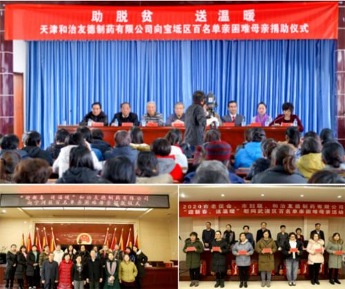 2020年新冠疫情发生后,和治友德在韩金明董事长的统筹指挥下,在郅群副总裁的协调推动下,第一时间捐赠价值310万元的爱心抗疫物资,首批捐赠物资100台空气净化器通过天津市慈善协会发往武汉火神山医院,第二批100台空气净化器捐赠给天津市卫健委指定的47家定点医疗机构和发热门诊医院,通过宝坻区红十字会将300箱和治友德口服液发放给宝坻区各乡镇卡口的一线人员。在2022年天津新冠疫情突发之际,和治友德向天津市宝坻区红十字会捐赠价值50余万元的爱心抗疫物资,向东丽华明社区的抗议志愿者捐赠价值1.74万元的健康产品及爱心盒饭,以实际行动支持抗疫行动。