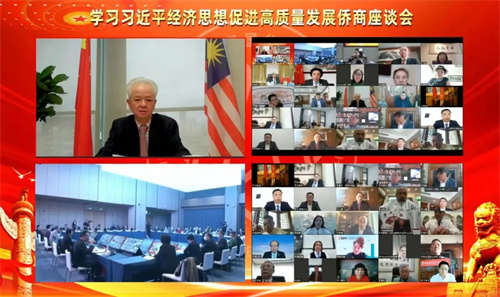 中国侨商联合会常务副会长、广东省侨商会会长、完美(中国)有限公司董事长、马来西亚丹斯里皇室拿督古润金太平绅士(线上)出席会议并作交流发言。