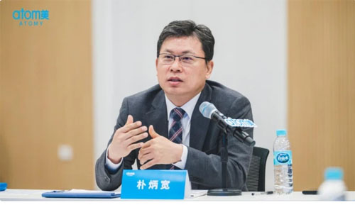 “艾多美”总经理朴炳宽介绍“艾多美”在企业社会责任方面所做的工作,“艾多美”一直践行“分享文化”,积极的回馈社会,在多个领域去帮助弱势群体,为社会做出贡献,希望通过这次捐赠,进一步提升儿童在道路通行中的被辨识度和自我保护能力。