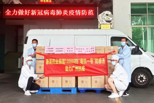 在广州市疫情防控形势再次面临严峻复杂的时候,康美药业发挥康美智慧药房中药代煎煮及配送服务优势,向广州市白云区、海珠区、越秀区、番禺区等地17个街道办抗疫一线党员和志愿者捐赠“粤抗一号”中药防感汤10000剂(合计20000包)。