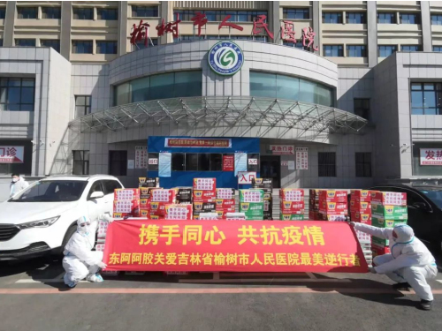 吉林省作为本次疫情爆发的重点地区,牵动着无数同胞的心。东阿阿胶主动作为,发挥统筹优势,向吉林省榆树市人民医院送去生活物资,全力支持吉林省疫情防控工作,贡献东阿阿胶人的爱心和力量。