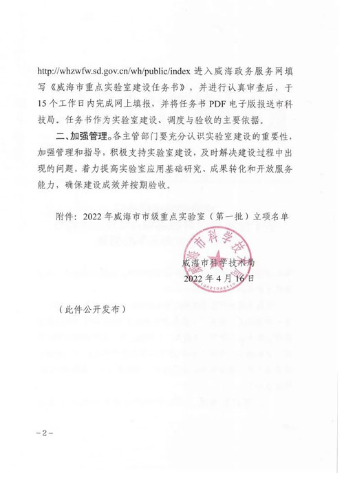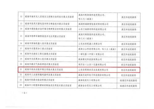 2022年4月16日,根据威海市科学技术局文件(威科字[2022]12号),安然集团申报的威海市纳米功能纤维应用技术重点实验室获批。