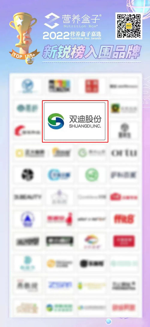双迪携产品入围2022年营养盒子嘉选新锐榜
