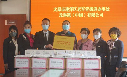 近日,玫琳凯山西分公司启动抗疫支持公益项目,向太原市老军营街道办捐赠了30398元防疫物资,用实际行动为疫情防控贡献力量。玫琳凯山西省对外事务经理李刚表示,疫情当前,正是企业回馈社会的时候,玫琳凯作为具有高度社会责任感的企业,始终关注疫情发展,希望此次捐赠能有效助力疫情防控工作,保障基层一线工作人员健康防护,同心抗疫,共克时艰。