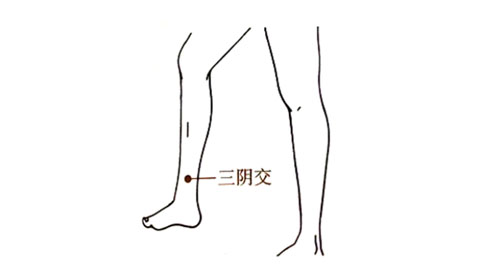 操作方法:将左脚架于右腿上,用右手的拇指或中指指端用力按压左侧三阴交穴,一压一放为1次,按压50次;然后改为先顺时针方向、后逆时针方向各按揉此穴5分钟,力量柔和,以感觉酸胀为度,不可力量过大,以免伤及皮肤。然后换右脚,方法同上。
