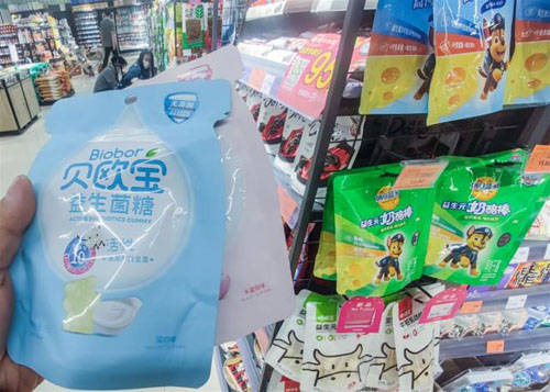 在盒马鲜生一家门店里,货架上出现了益生菌软糖、益生菌核桃仁、益生菌溶豆、益生菌饼干、益生菌棒棒糖等近10种益生菌食品。“这类零食销量不错,有家长会买给孩子。”销售人员表示,益生菌零食比普通零食更健康,可以调理肠胃。