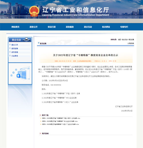 近日,辽宁省工业和信息化厅公示2022年度辽宁省“专精特新”梯度培育企业名单,双迪公司成功入围!