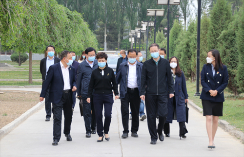 2022年5月26日上午,青海省药品监督管理局局长谢宏敏、副局长马少民及各相关处室负责人一行6人,在青海国家高新技术产业开发区生物科技产业园区党委书记、管委会主任金峰及相关部门负责人陪同下对金诃藏药开展以“推动医药产业创新发展”为主题的调研。金诃藏药副董事长俞瑞华、藏药炮制中心总经理班玛才仁、生产事业部副总经理周小兰、骆盛等陪同调研。