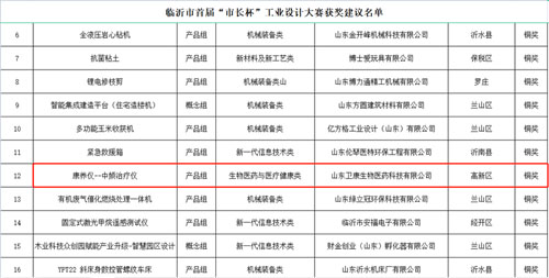 卫康中频治疗仪获临沂市“市长杯”工业设计奖