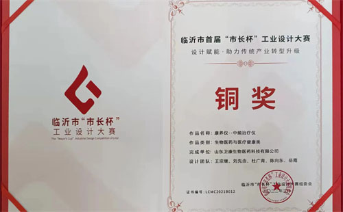 近日,临沂市首届“市长杯”工业设计大赛颁奖仪式暨优秀工业设计作品展示周在临沂国际博览中心成功举办。本次大赛共有近400余家企业、设计机构、高校及个人参加,共计499项参赛作品。卫康生物集团自主研发的“康养仪——中频治疗仪”荣获大赛铜奖。