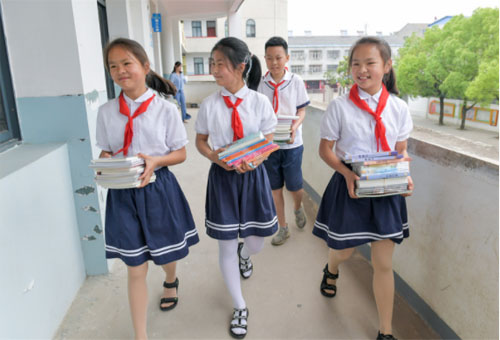 “帮忙搬书时,我大致浏览了下,感觉这次上架的新书,都是非常优质版本。比如曹文轩的小说有很多版本,而我们收到的是湖北少年儿童出版社的版本,书中的插图,是画家在曹文轩故乡蹲点体验生活后画的,非常用心,绝不是像有些插画师那样随手一画就交差,特别能反映作品特色。”朱湖中心小学语文教师徐聪和同事们一样,从图书的选取中,深切地感受到跃莱公司的细心与体贴。