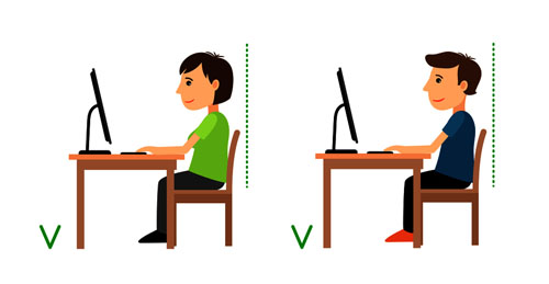不要离电脑屏幕过近,建议双眼距离屏幕为50-70厘米,而屏幕应略低于眼水平位置10-20厘米,呈15-20度的下视角。这个角度及距离能降低对屈光的需求,减少眼球疲劳。