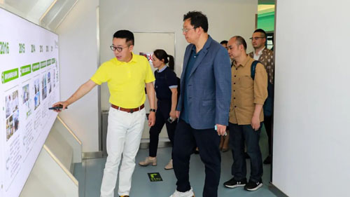 李和伟董事长一行抵达后,徐建成董事长携集团高管热情陪同并全面参观了绿叶化妆品产业园。绿叶智能制造中心内,16条自动化的化妆品、个护产品和洗涤用品生产线,采用德国EKATO、法国KALIX、瑞士ABB机器人等先进生产设备,车间获评江苏省智能制造示范车间、苏州市示范智能车间,位列苏州高新区“智改数转”示范企业十强,通过CMA(中国检验检测机构资质认定证书)、CNAS(中国合格评定国家认可委员会实验室认可证书)2项重要认证,令李和伟董事长一行实地感受了绿叶近年来取得的飞速发展与变化。
