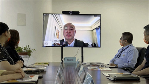 尚赫公益基金会理事长陈以勳通过“云连线”的方式,与尚赫公益基金会秘书长陈政裕及理事、监事成员回顾总结了2022上半年尚赫公益在履行社会责任方面各项工作的落实情况。