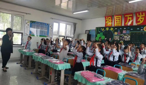 第165所 辽宁省阜新市新邱区阿金歹尚赫张迪小学学生与尚赫爱心大使张迪视频连线,表演舞蹈《听我说谢谢你》